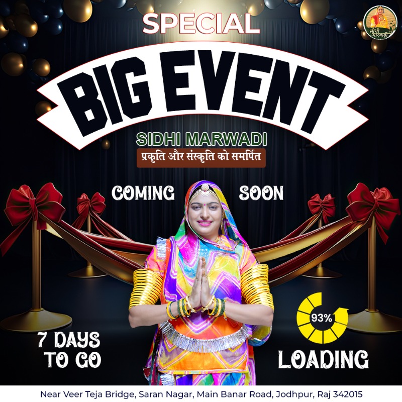 जीवन की इस बड़ी घड़ी में, हर ख्वाब सच करने का अवसर है। हौसला बुलंद रखो, अपनी मंज़िल को पाने का, इस सफर में जीत का स्वाद अनगिनत है..!! सिधी मारवाड़ी कम्पनी का Official Launching Event और Creators Meet 2024 का आयोजन 7 जुलाई को जोधपुर में होने जा रहा है🤗💐🎉🎊 इस खास मौके पर आप सब भी हमारी खुशी में शामिल होने आएंगे ना...? 2 PM, 7 जुलाई 2024, रविवार, Sidhi Marwadi Head Office, Saran Nagar, Near Veer Tejaji Bridge, Main Banar Road, Jodhpur, Rajasthan