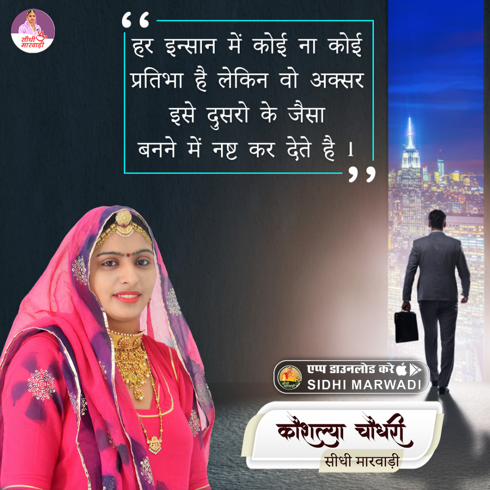 हर इन्सान में कोई ना कोई प्रतिभा है लेकिन वो अक्सर इसे दुसरो के जैसा बनने में नष्ट कर देते हैMarch 7, 2024 at 01:03 PM37413 CommentsLikeSaveShare