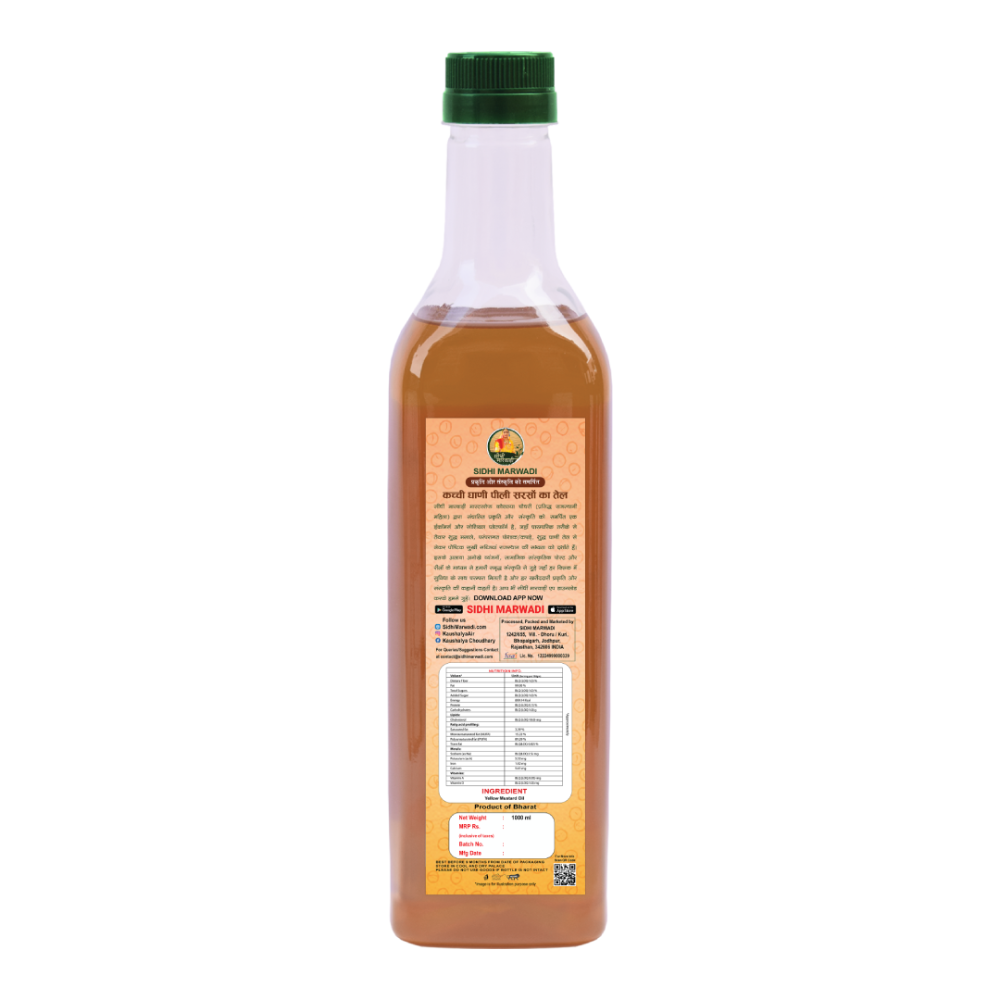 सीधी मारवाड़ी कच्ची घाणी सरसों के तेल के साथ अपनी पाक यात्रा को उन्नत करें जहां प्रकृति, परंपरा और संस्कृति एकजुट होकर आपको एक अनोखा स्वादिष्ट अनुभव देती है।