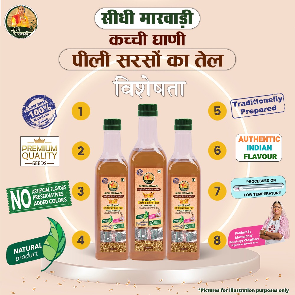 सीधी मारवाड़ी कच्ची घानी पीली सरसों का तेल - एक शुद्धता जिसका आप स्वाद ले सकते हैं, एक परंपरा जिस पर आप भरोसा कर सकते हैं