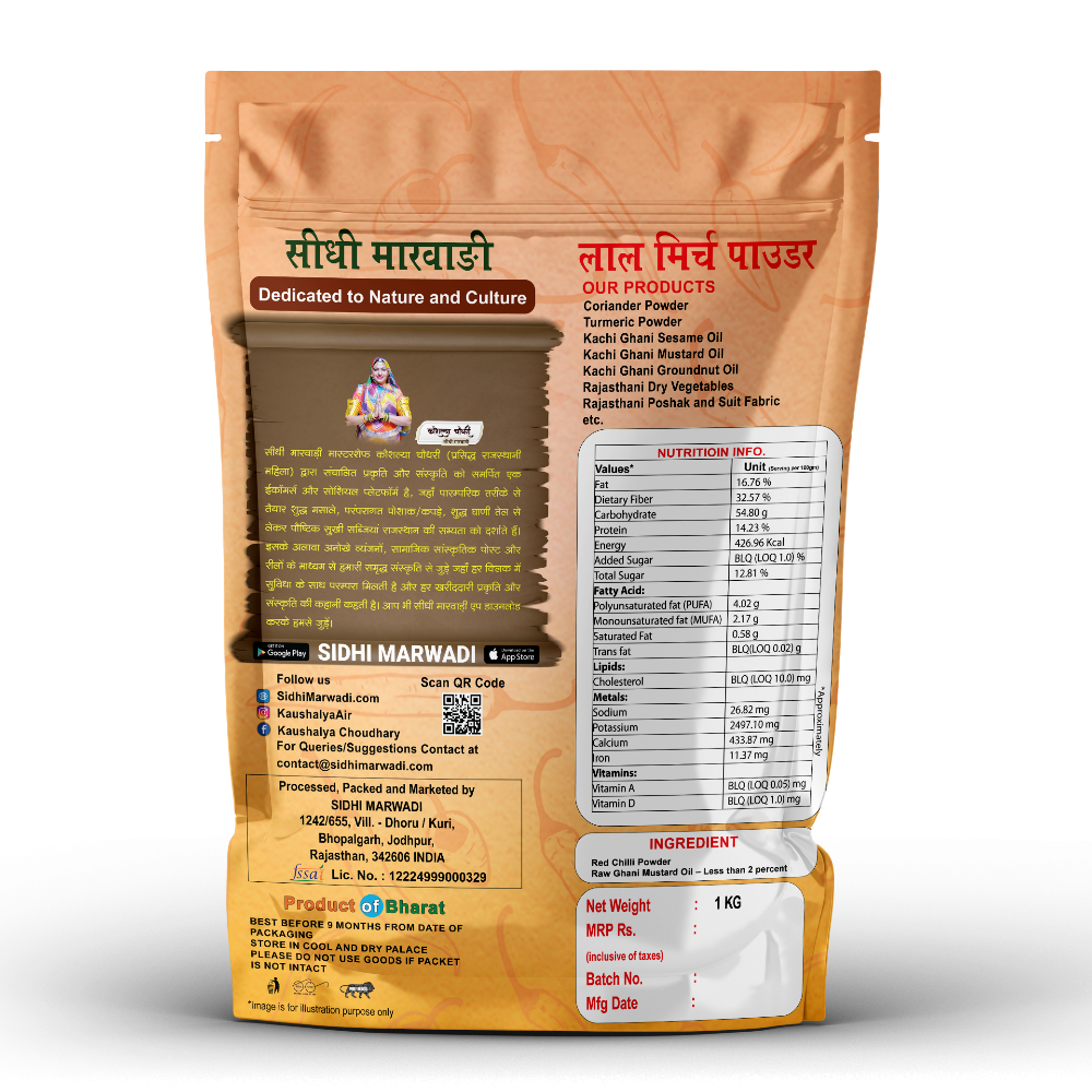 Ram Ram Sa! This is our 1kg family pack of Lal Mirch Powder made from Whole Red Chilli. If you like that bold desi punch in tadka, sabzi, curry and achar—this pack is made for everyday Indian kitchens.