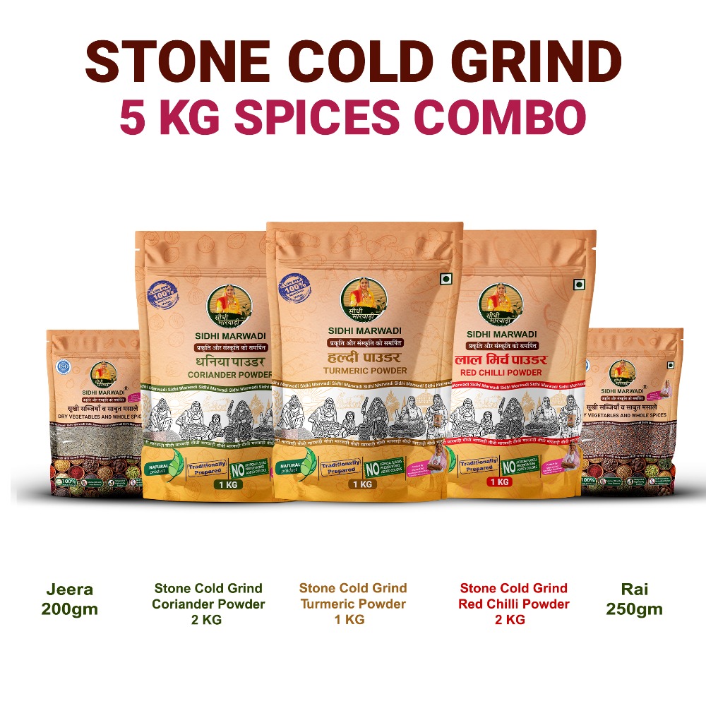 Stone Cold Grind Spice Combo Pack 5kg (Lal Mirch + Dhaniya + Haldi + Jeera + Rai) – SS45C