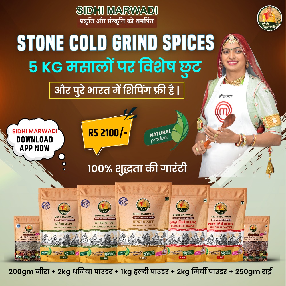 Aapke daily kitchen ke liye ek hi order me “base masale” ready. Sidhi Marwadi 5kg Spice Combo Pack ek value pack hai jisme ghar ke regular use wale masale ek saath milte hain— taaki aapko baar-baar chhote packs order na karne pade.