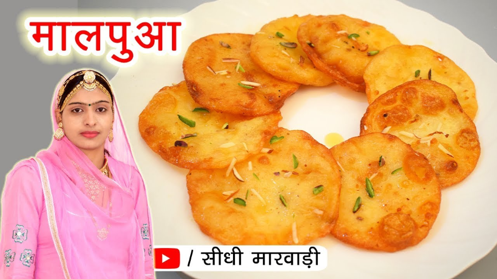 घी गर्म होने पर घोल को थोड़ा-थोड़ा करके घी में मालपुआ बनाये